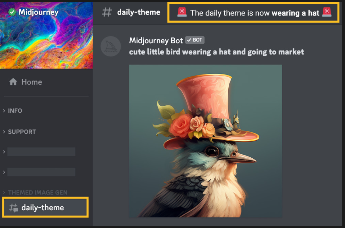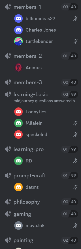 🌈 카페에 누가 있는지 보여줍니다. 미드저니 봇과 함께 진행자 및 가이드라는 다른 도우미도 여기에 있습니다.