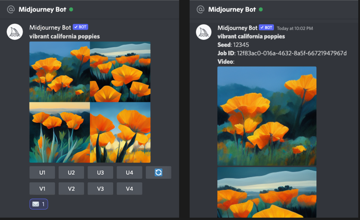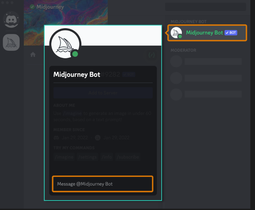 미드저니 가입자는 디스코드 쪽지에서 미드저니 봇과 일대일로 작업할 수 있습니다.