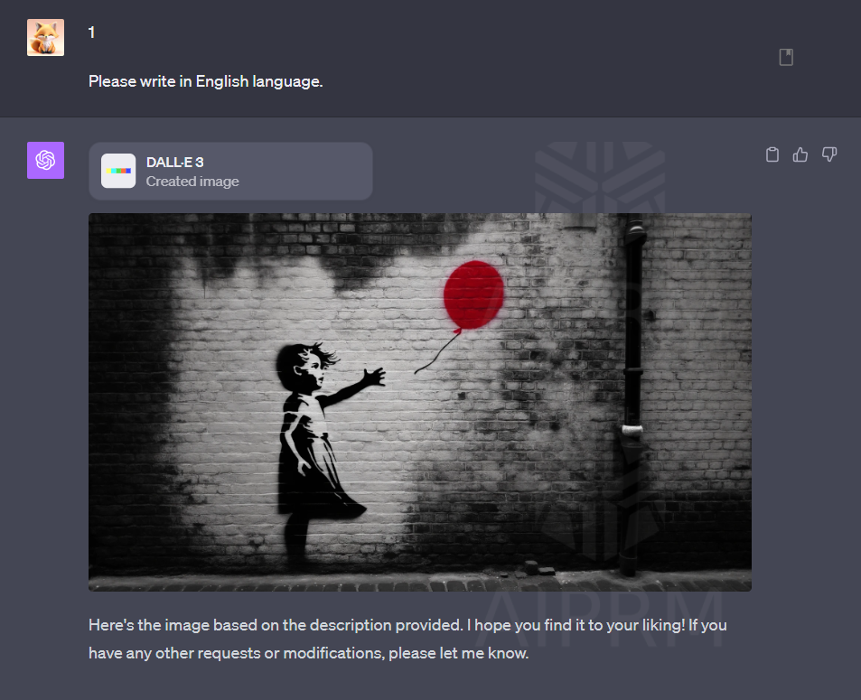 뱅크시는 현대 미술가이기 때문에 직접적으로 뱅크시의 스타일을 참고할 수는 없습니다. 하지만 뱅크시 작품의 특징인 일반적인 스텐실 그래피티 스타일에서 영감을 받은 이미지를 만들 수 있습니다.