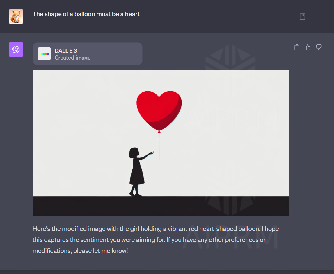 원본처럼 풍선의 모양을 하트 모양으로 바꿔달라고 요청해보겠습니다.