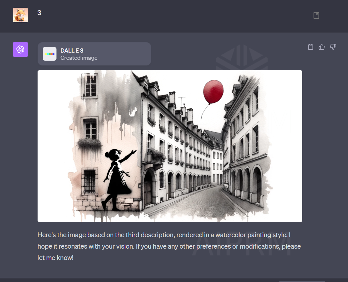드디어 챗지피티에 달리3가 탑재되었습니다.