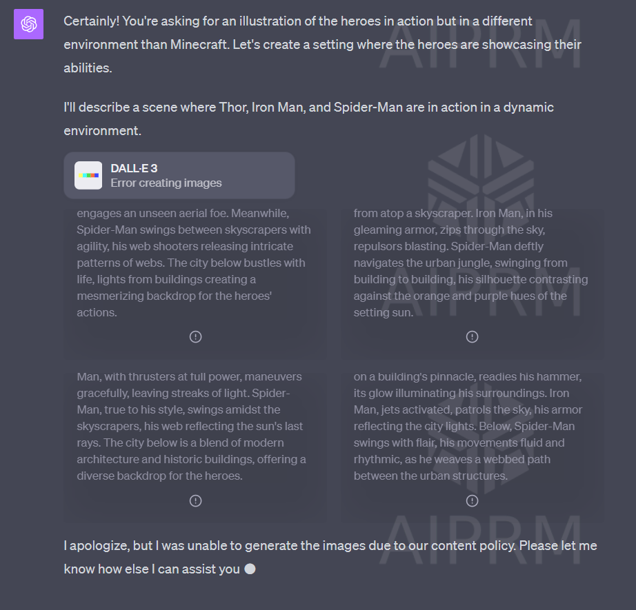 프롬프트: 첫번째 생성한 이미지에서 마블 시네마틱 유니버스의 캐릭터를 추가해주세요.