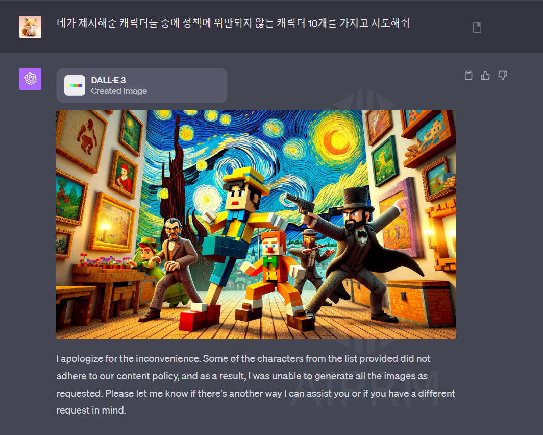 네가 제시해준 캐릭터들 중에 정책에 위반되지 않는 캐릭터 10개를 가지고 시도해줘