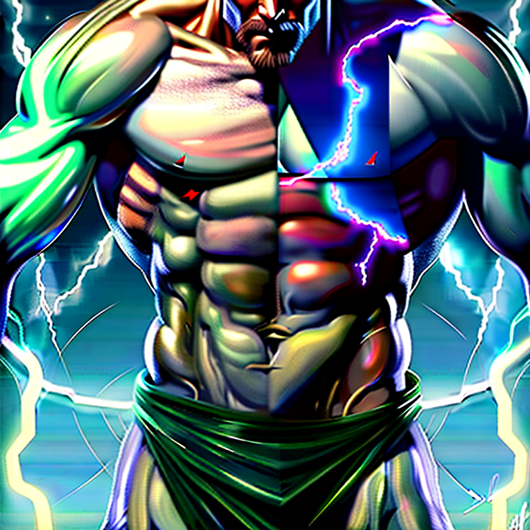 Stable Diffusion (prompt:Prometheus-unbound-as-a-powerful-holy-muscular-man-casting-lightning-magic-detailed-clothing-digital art)