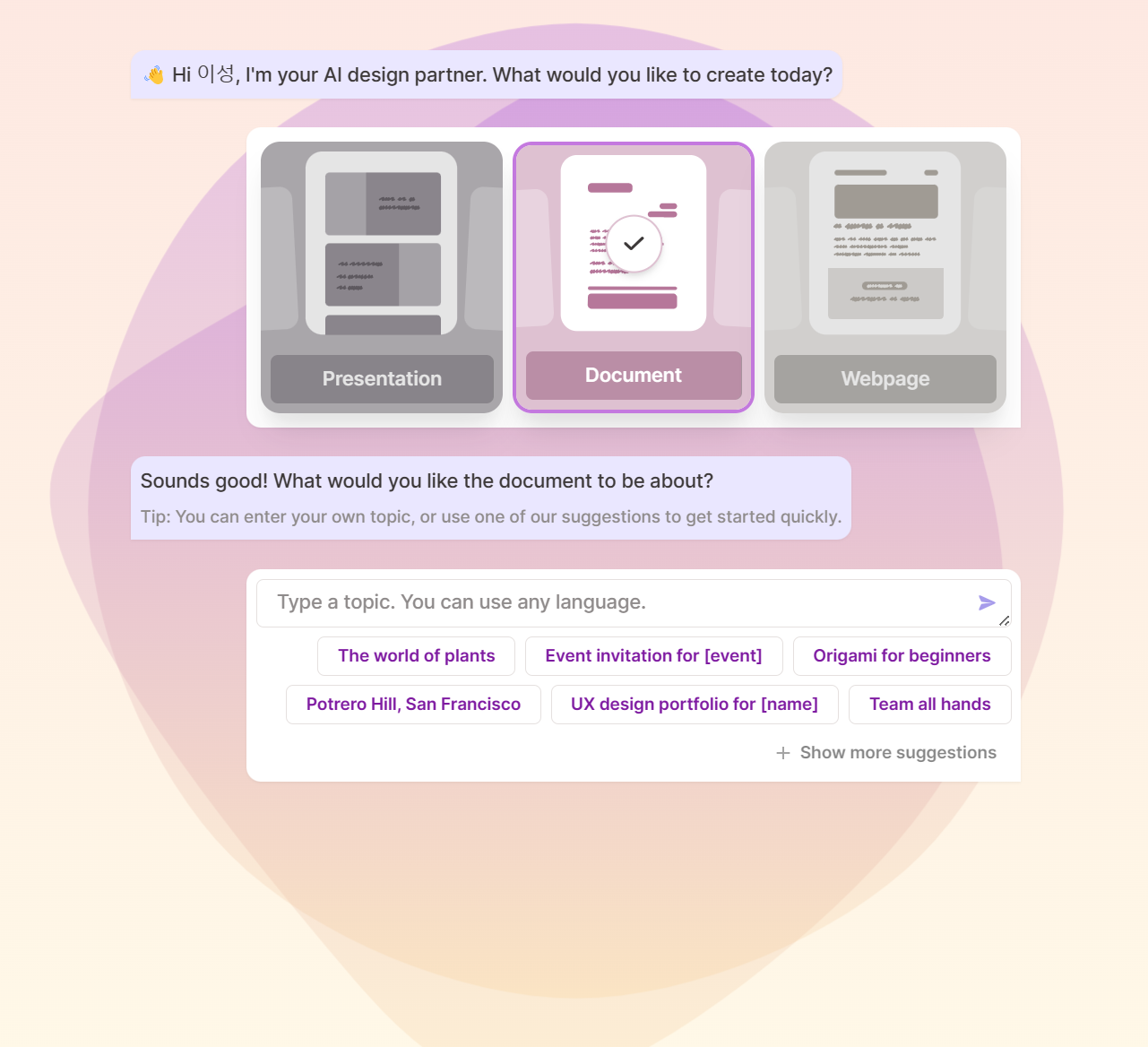 생각한 주제가 있다면 type a topic 부분에 입력합니다.