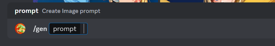 디스코드에 가입하면 채팅창에 '/gen' 이라는 명령어를 넣고 원하는 내용의 프롬프트를 입력하는 방식이다.