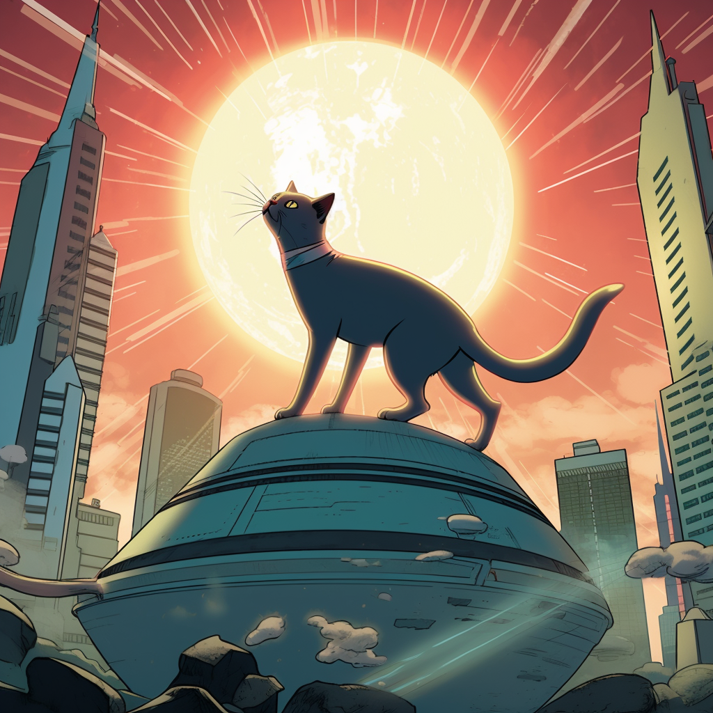 VFX and SFX combine to deliver an audio-visual spectacle, the eerie hum of the alien crafts, the faint rustle of the brave cat's fur, each sound amplified and enhanced to deliver an immersive experience. The scene is a testament to the power of hyper-realistic, volumetric rendering, the sharp focus and detailed textures creating a visual spectacle that transcends the boundaries of imagination,--v testp