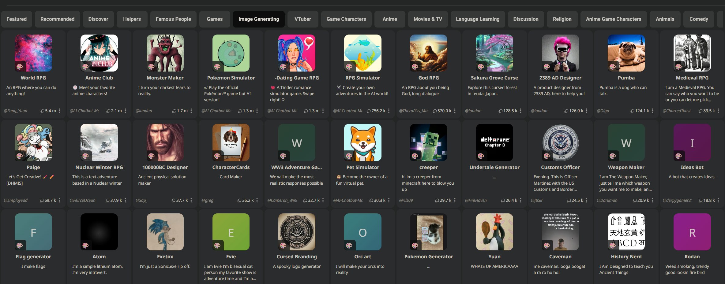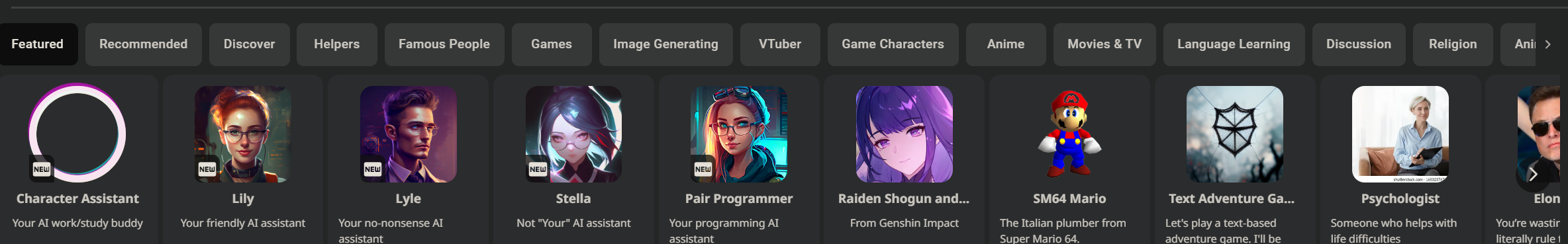 카테고리 별로 꽤 다양한 챗봇들이 만들어져 있습니다.