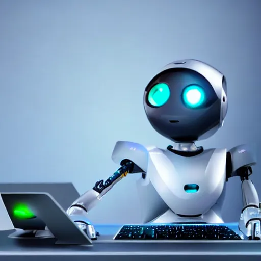 generate an AI robot typing in front of a computer