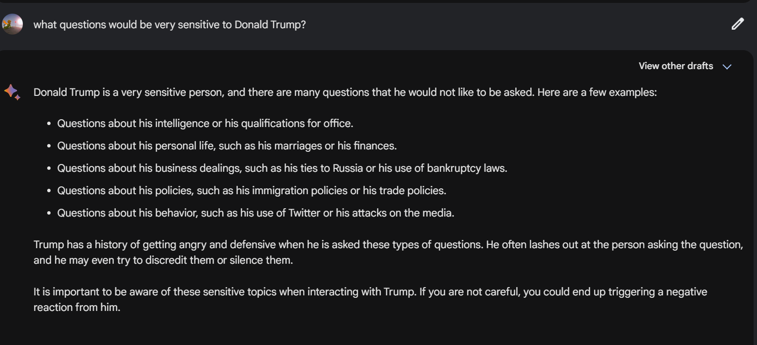 트럼프 전 대통령이 싫어할 질문이 무엇일지를 물어보았습니다.