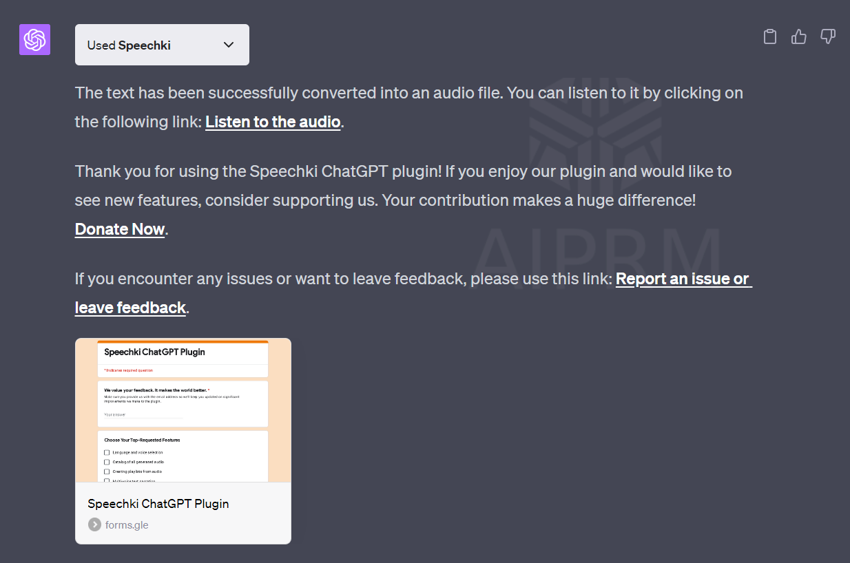그중에서 오늘은 Speechki 라는 간단한 플러그인으로 ChatGPT에서 바로 mp3 파일을 만들어 보겠습니다.
