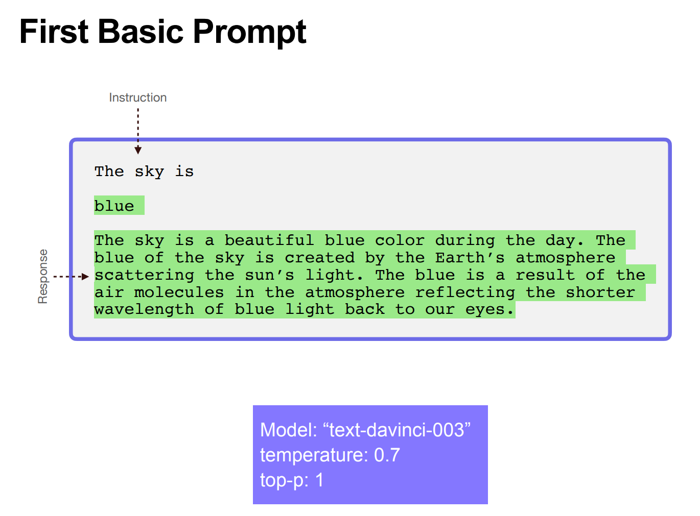 프롬프트는 인공지능 모델에게 요청이나 작업에 대한 설명을 말합니다. 예를 들어, "뉴욕에서 가장 좋은 레스토랑 10곳의 목록을 생성하세요"와 같은 요청이 프롬프트입니다. 모델(Model)은 이러한 프롬프트를 입력값으로 받아서, 출력값을 생성합니다. 출력값은 주로 자연어 텍스트이지만, 이미지, 음성 등도 생성 가능합니다.