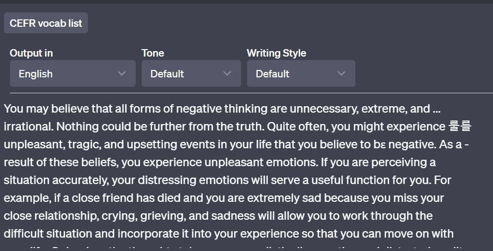 오랜 고민 끝에 다다른 결론은 ChatGPT에게 단어 목록을 추출하라고 프롬프트를 넣기 전에 반드시 거쳐야할 과정이 있다는 것이고, 그것은 입력한 텍스트를 ChatGPT가 먼저 분석하고 평가해서 수준을 결정하게 하는 과정을 꼭 넣어야 한다는 점이었습니다.