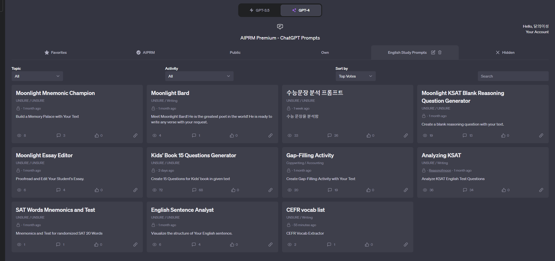 저는 AIPRM for ChatGPT 확장 프로그램을 사용하고 있기 때문에 AIPRM에서 요구하는 프롬프트의 양식에 맞춰서 프롬프트를 제작하였습니다. AIPRM을 쓰지 않는 경우에는 제가 공유한 프롬프트를 먼저 넣고 이어서 텍스트를 넣어서 사용하셔야 합니다.