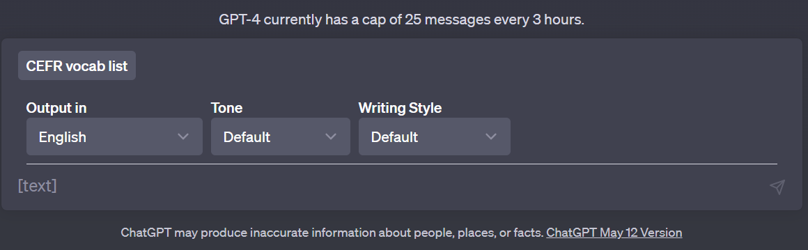 프롬프트 입력창 상단에 CEFR vocab list 라고 적용되는 것이 보이실 겁니다.