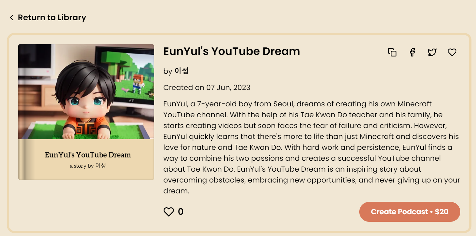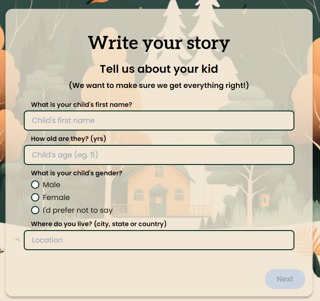 아이에 대한 정보를 넣으면 맞춤형으로 이야기가 생성이 됩니다.