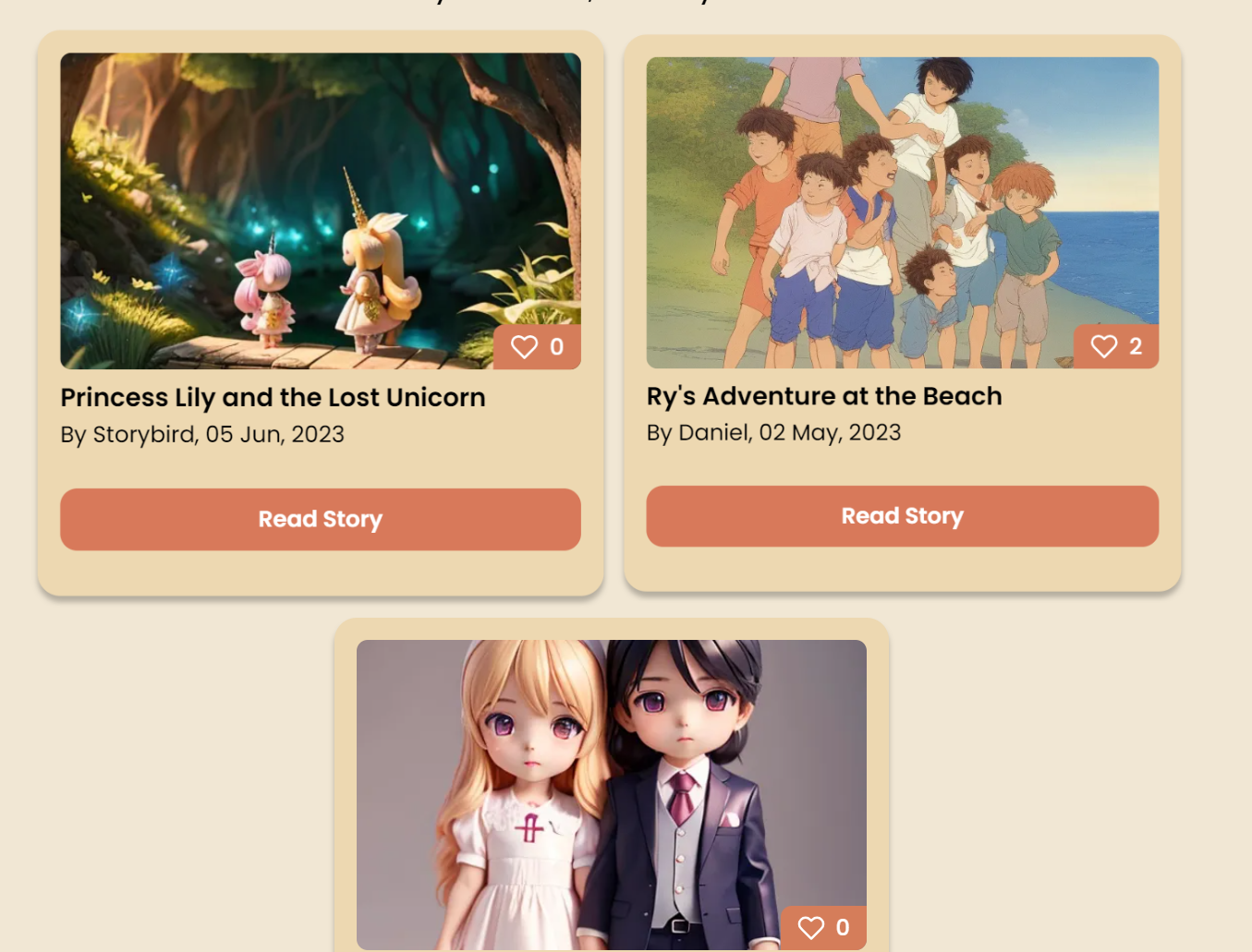 그림책 아래에는 다른 사용자들이 만든 이야기도 공유되어 있습니다.