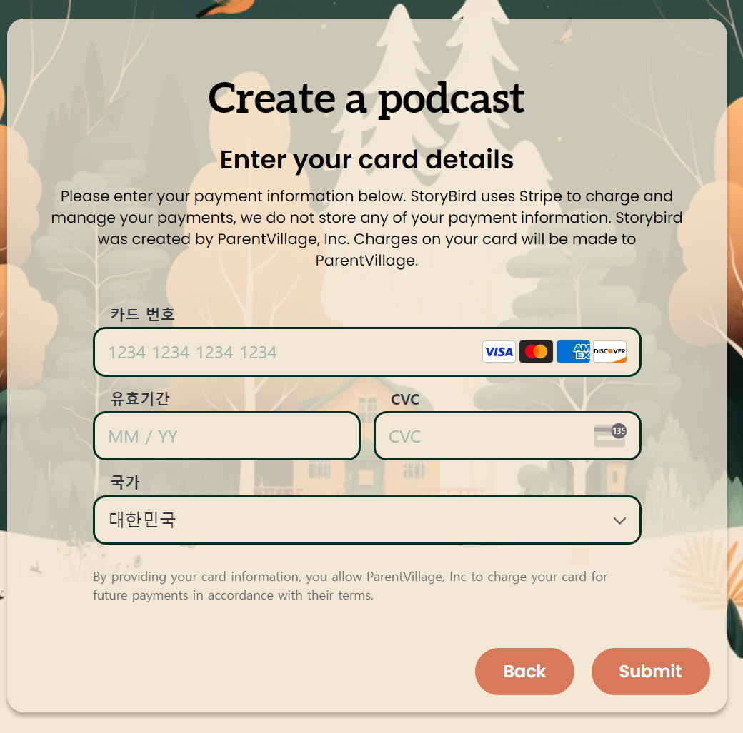 카드 정보를 입력하는 부분이 나옵니다.