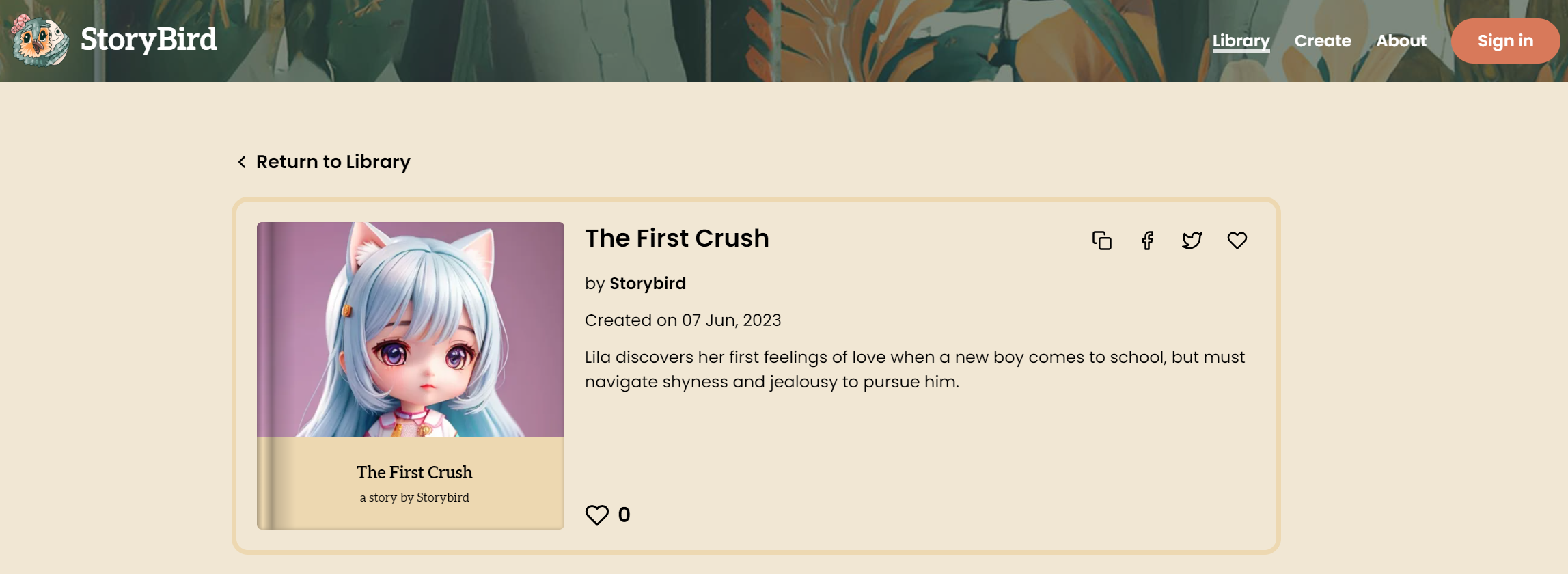 제가 입력한 프롬프트는 "create a story of first love" 였습니다.