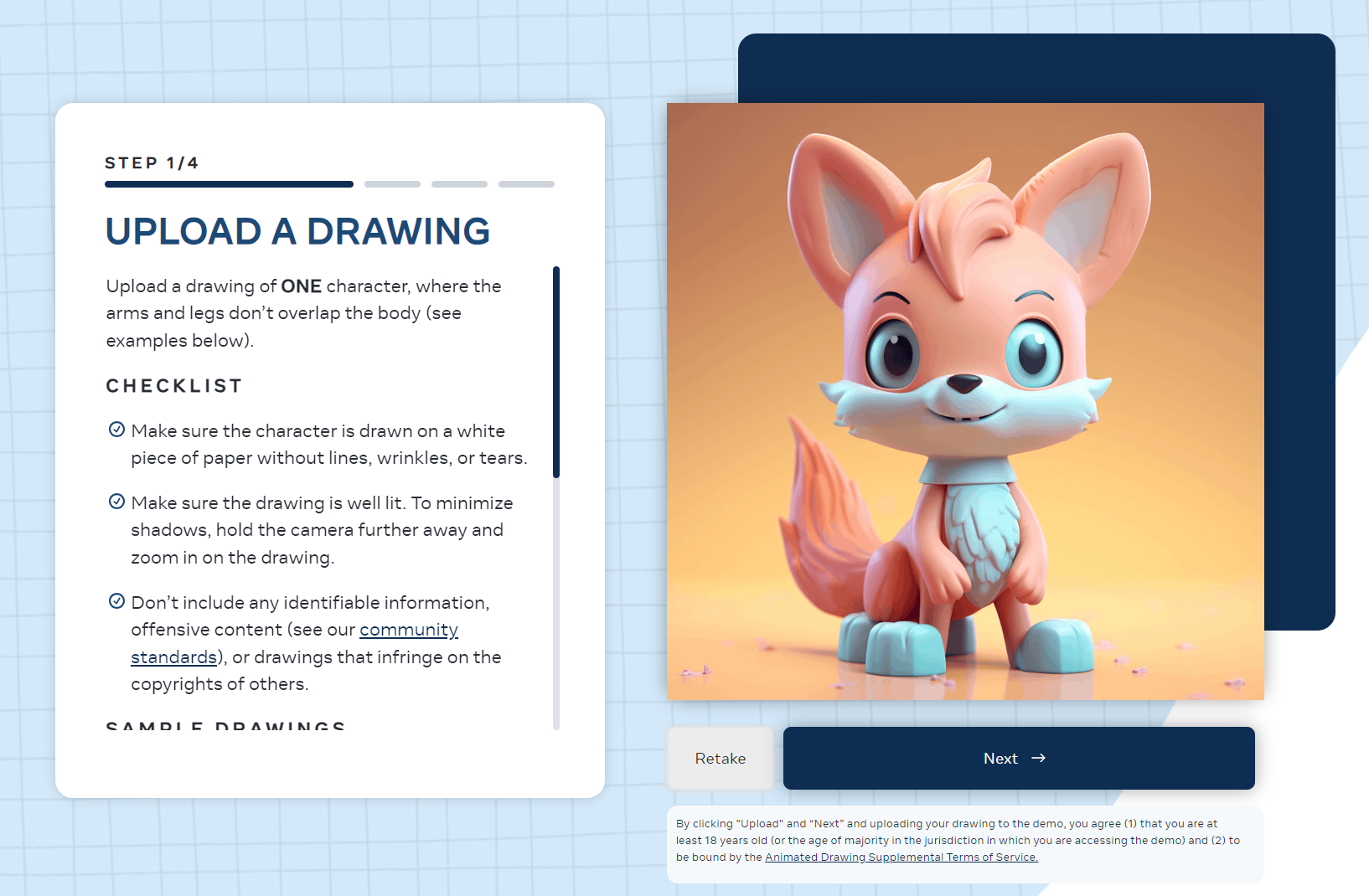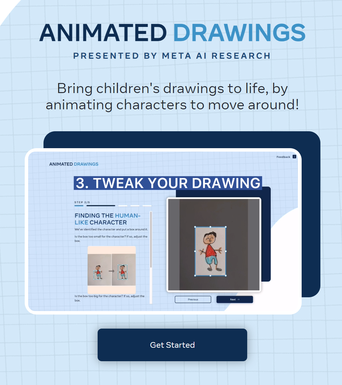 애니메이션 드로잉은 META AI Research에서 제공하는 AI 도구로, 캐릭터가 움직이도록 애니메이션을 적용하여 자녀의 그림에 생동감을 불어넣을 수 있습니다.