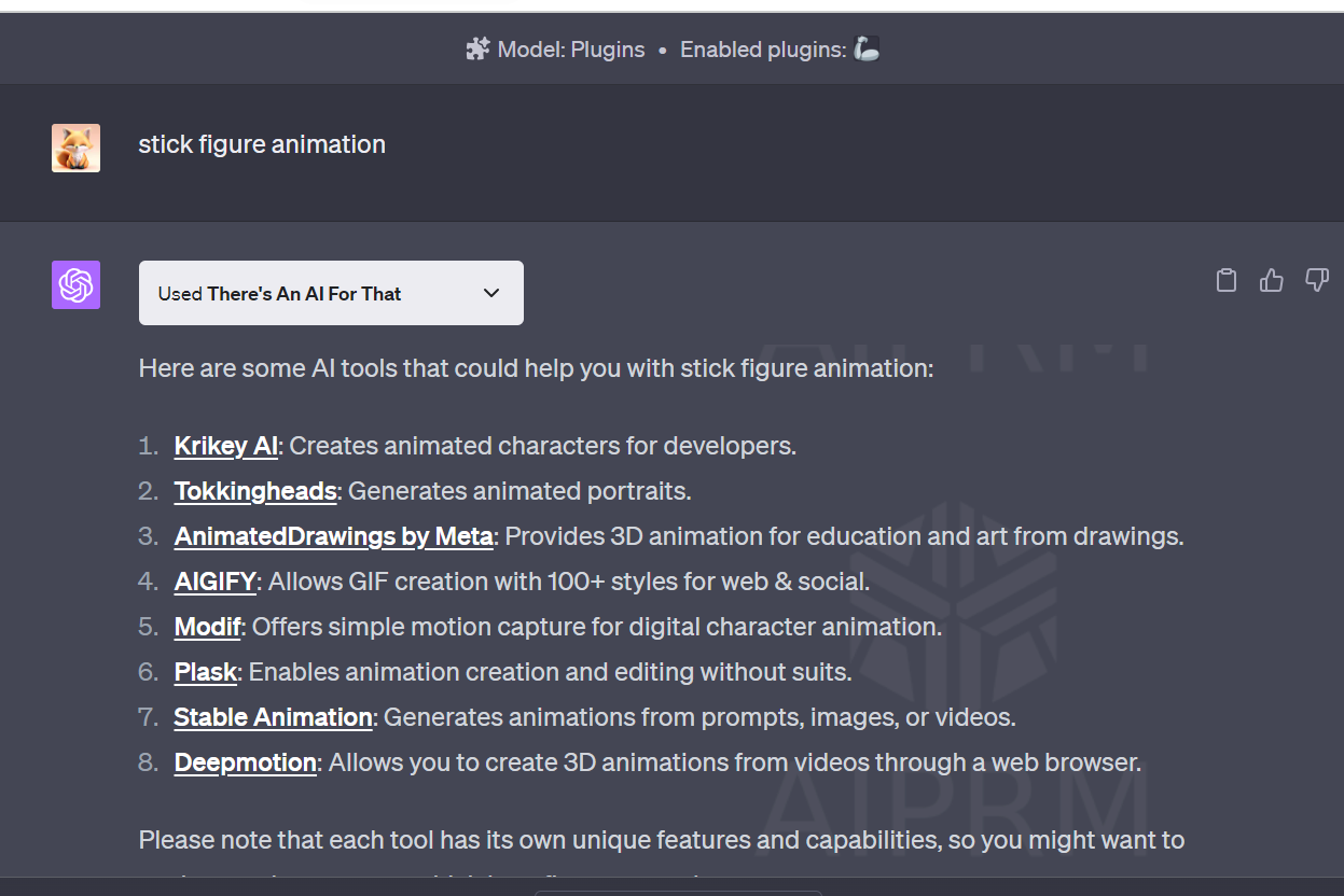 그래서 ChatGPT의 플러그인 중에서 There's An AI For That 을 이용해서 검색을 하였습니다.