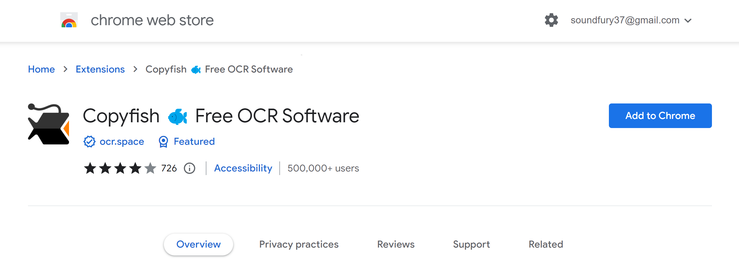 크롬 웹 스토어에서 Copyfish 를 찾아 확장프로그램을 추가합니다.