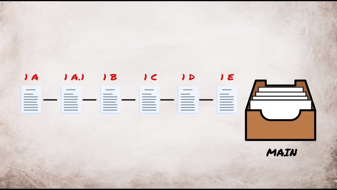 Zettelkasten은 문헌 노트와 영구 노트를 저장하기 위한 두 개의 슬립 박스를 사용하여 구성됩니다. 영구 노트는 의도적이고 의미 있는 방식으로 연결되고 정렬되며 관련된 노트는 물리적으로 서로 가까이 배치됩니다. 이 시스템은 사고의 분기 및 다른 사고 라인 간의 쉬운 이동을 허용합니다.