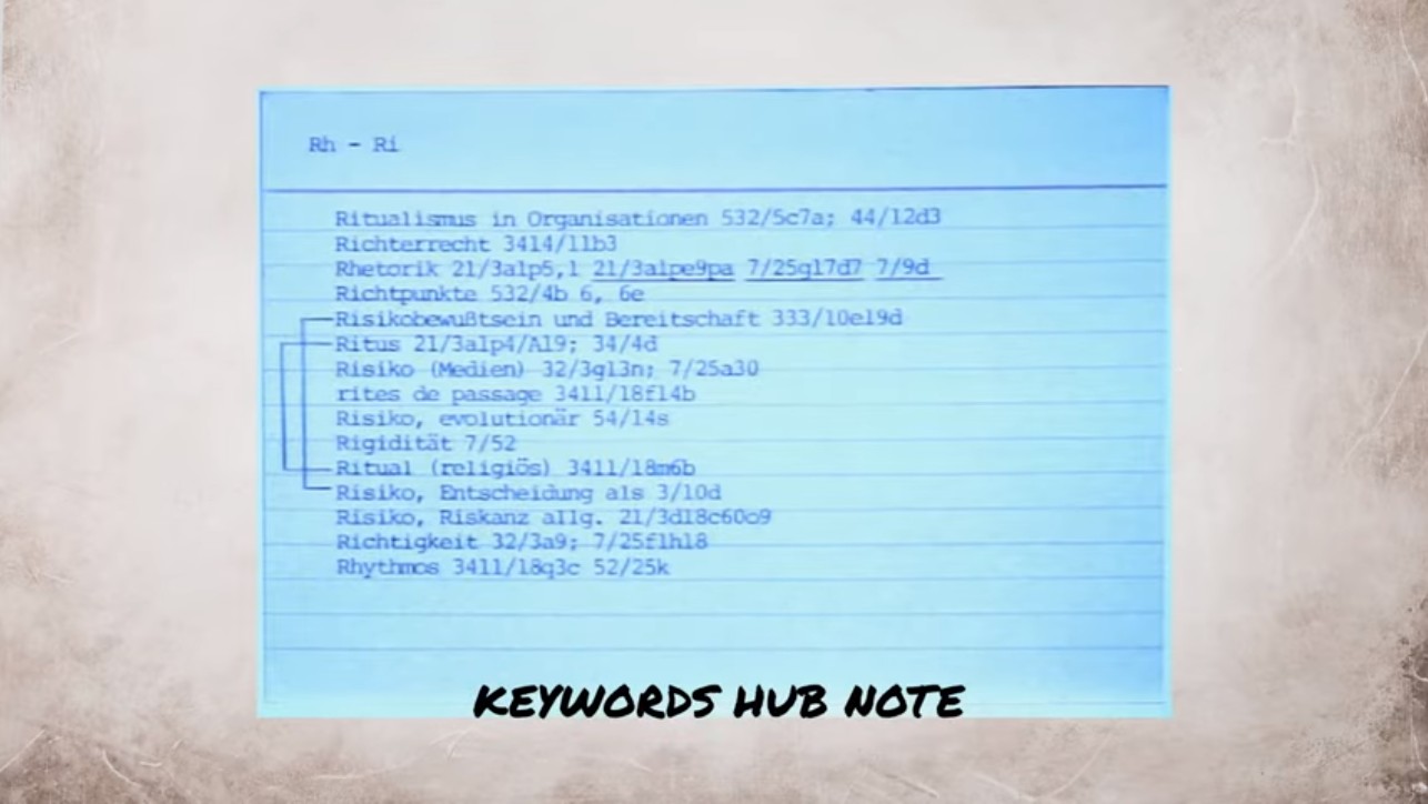 루만의 일상 생활은 독서, 문헌 및 영구 노트 작성, 노트 검토 및 관련성 확인, 새로운 아이디어 생성으로 이루어져 있었습니다.