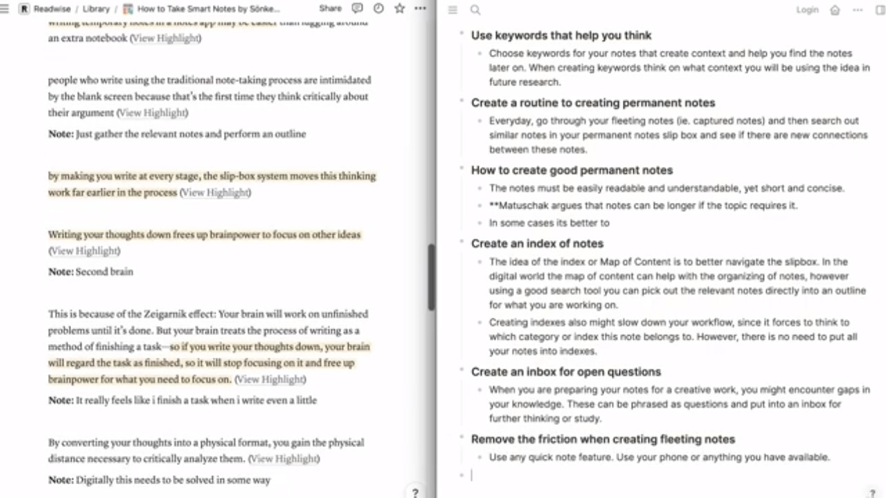 이 비디오에서 연설자는 Zettelkasten 방법과 Logseq를 사용하여 읽은 모든 것을 기억하는 방법에 대해 설명합니다. 그들은 Logseq를 지식 관리 시스템으로 사용하고, 중요한 구절에 집중하기 위해 독서 중에 질문을 하는 중요성을 강조합니다. 그들은 Readwise와 Notion을 사용하여 Kindle에서 하이라이트를 정리하고 동기화하는 것을 추천하며, 하이라이트를 하이라이트하는 것의 유용성을 강조합니다. 연설자는 자신의 생각에 영향을 미치는 주장들을 요약하는 문학 노트를 작성하는 것의 중요성을 강조하며, 이러한 노트의 제목으로 테마를 사용하는 것을 제안합니다. 그들은 노트의 조직을 나중에 남겨두고 글쓰기에 집중하는 것을 조언합니다. 연설자는 또한 노트에 메타데이터를 추가하는 템플릿을 공유하며, 시스템의 세부 사항에 대해 걱정하지 않고 노트 작성을 시작하는 것을 장려합니다. 이 비디오에서 제시된 워크플로우는 책의 지식을 보존하고 사고와 글쓰기 기술을 향상시키는 데 도움을 주기 위한 것입니다.
