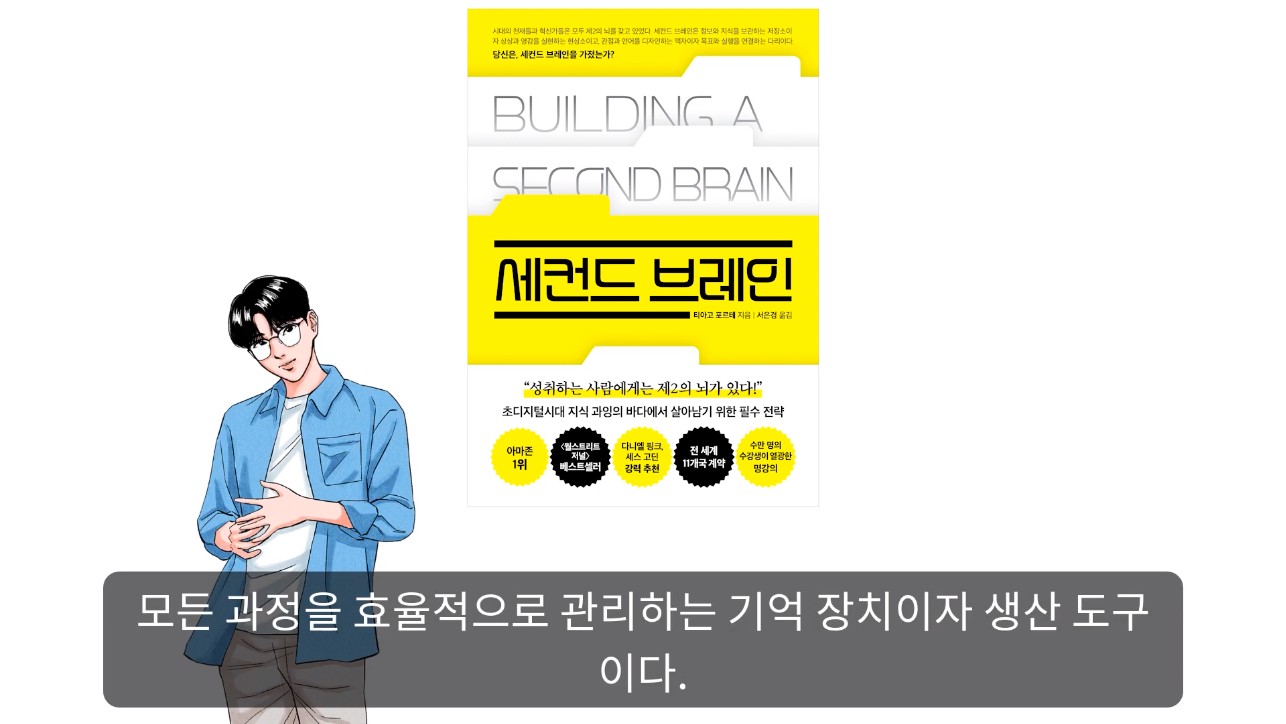 세컨드 브레인은 정보의 수집부터 창작과 표현에 이르기까지 모든 과정을 효율적으로 관리하는 기억 장치이자 생산 도구이다. 이 시스템은 불필요한 정보로 인해 두뇌가 과부하에 걸리지 않도록 하고 중요한 지식을 효율적으로 활용할 수 있도록 도와준다.