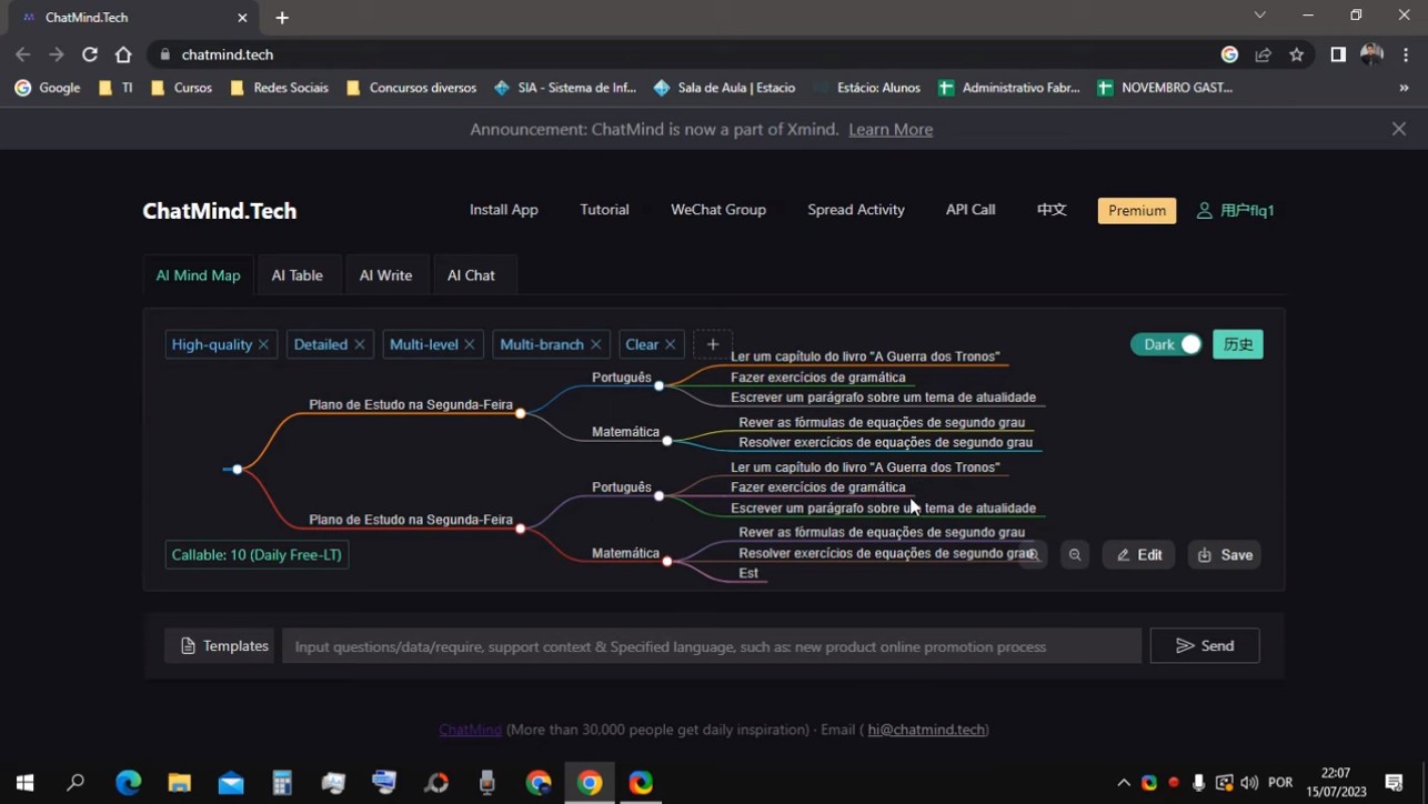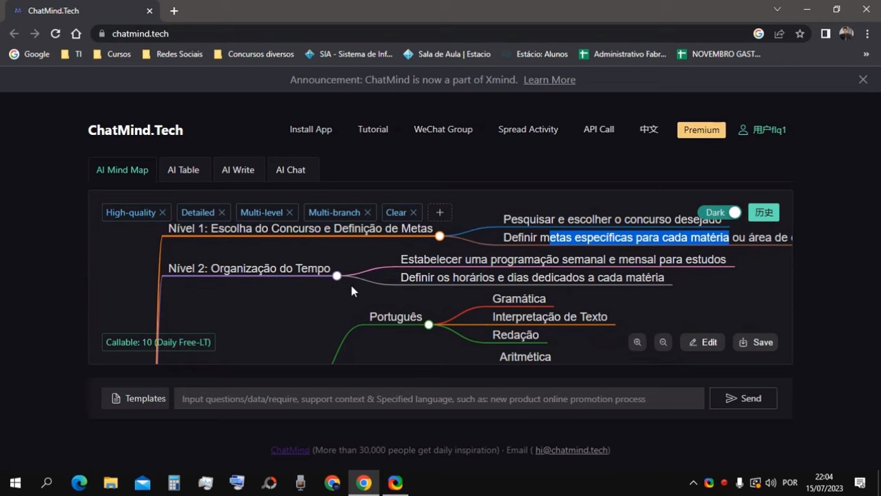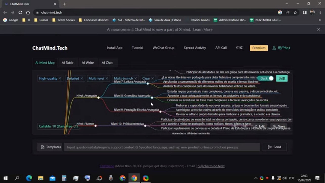 Chat Mind는 포르투갈어 공부와 시험 준비를 포함한 다양한 분야에 대한 맞춤형 학습 트리를 생성하는 인공 지능 테스트입니다. 무료로 제공되며 초보부터 고급까지 다양한 학습 수준을 지원하며,